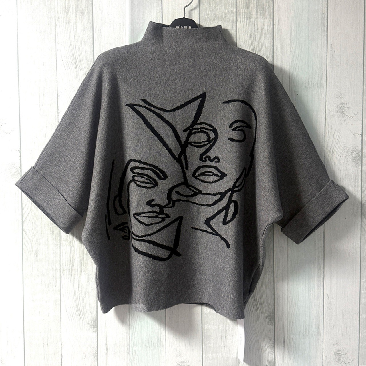 フェイスデザインが目を惹くニットプルオーバー